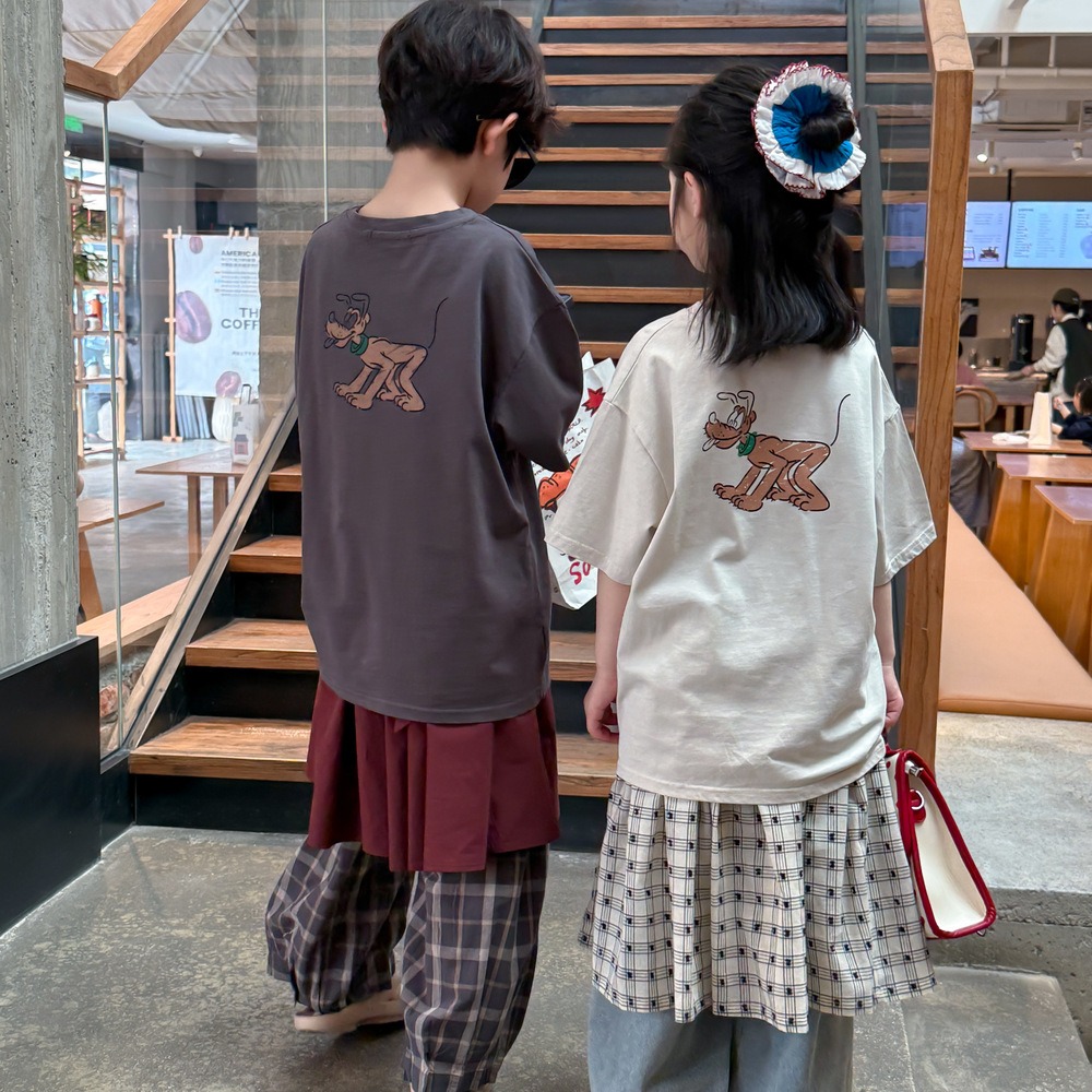 可愛復古卡通風格正反面雙印花設計,正面人物圖案搭配背面俏皮小狗,