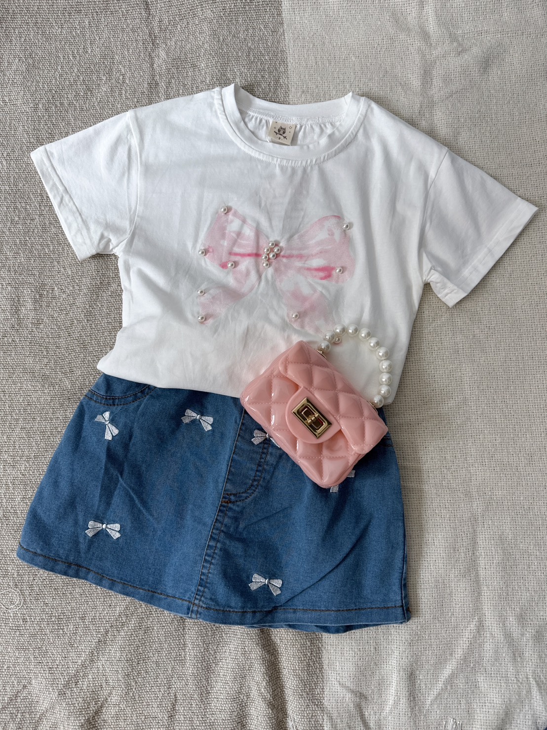 【BOW DENIM SKIRT PANTS|蝴蝶結刺繡牛仔|褲裙】