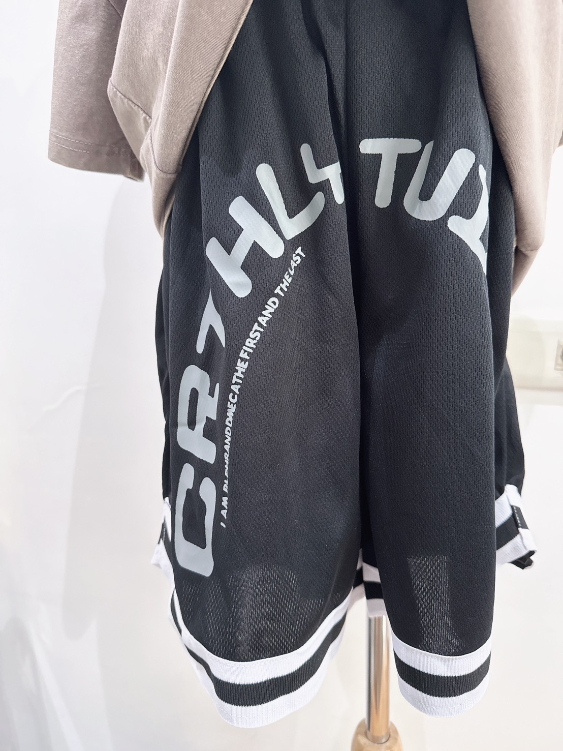 白黑條紋褲腳拼接,打造街頭潮流風格。