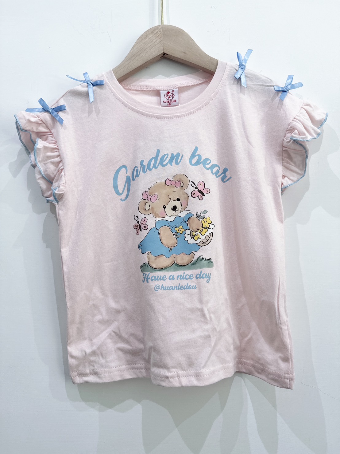【Garden Bear 肩膀蝴蝶結荷葉袖|短T】