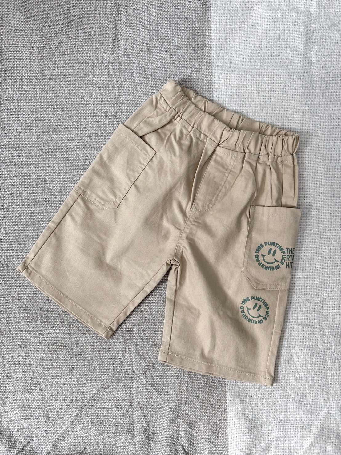 【HAPPY SMILE|笑臉卡其色工裝|短褲】