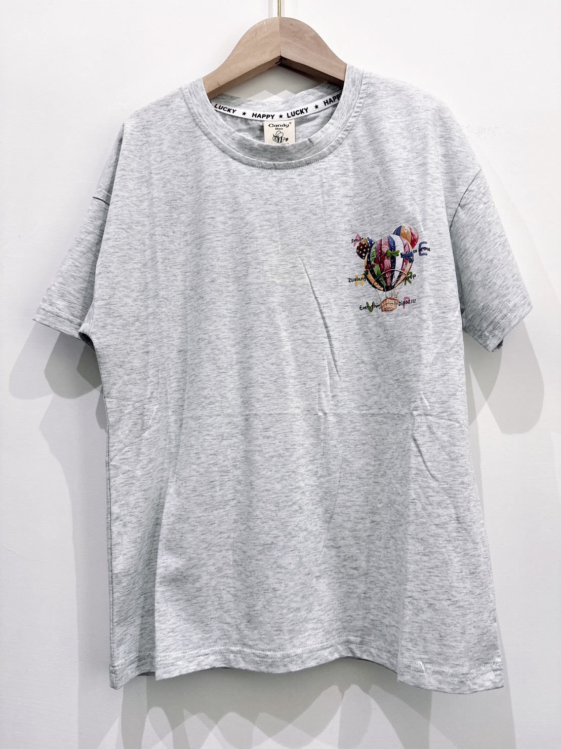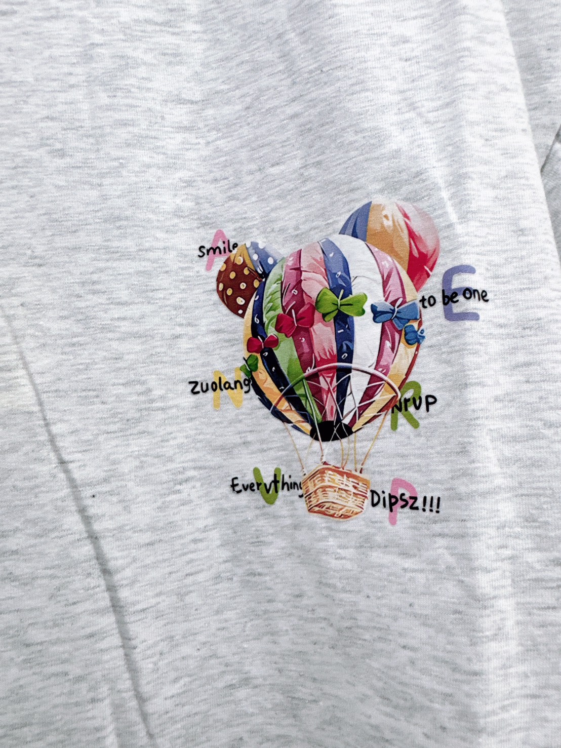 童趣插畫風格,將繽紛熱氣球搭配愛心耳朵圖樣,正面小圖+背面大圖設計,充滿視覺趣味與冒險感。俏皮英文字母與手繪筆觸帶來獨特童話感,讓每一天都像出發去旅行。