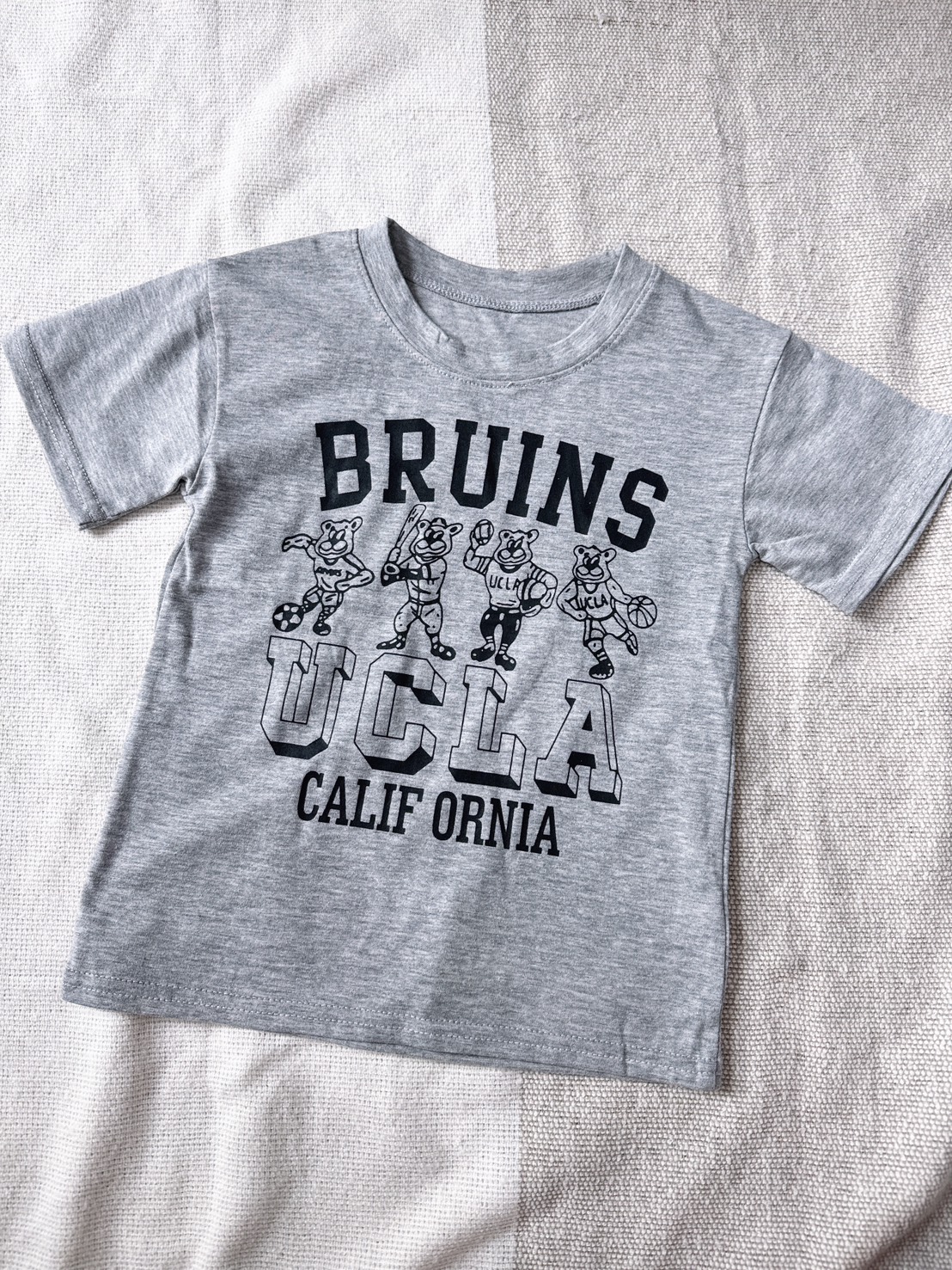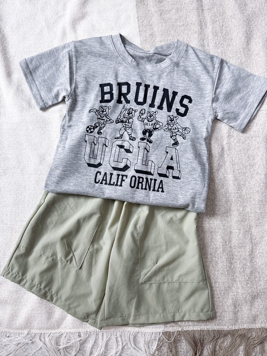 可愛又充滿活力的UCLA運動熊圖案,搭配大學風字體印花,整體設計簡約又有個性,展現出孩子們熱愛運動與冒險的精神!
